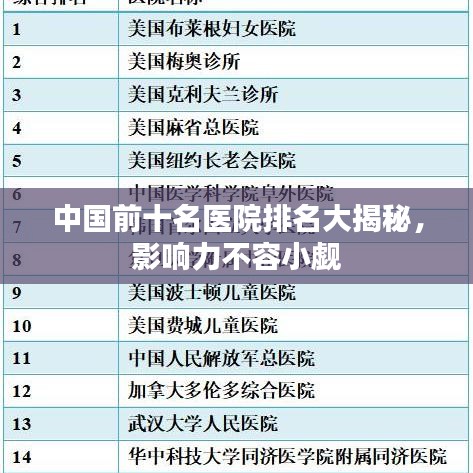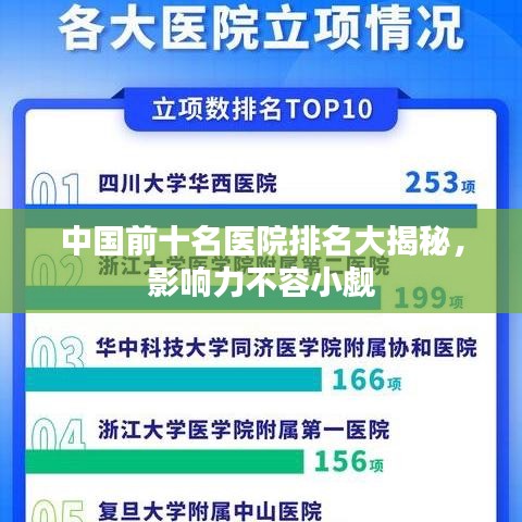 随着医疗行业的快速发展,中国各大医院在医疗技术、服务水平、科研实力等方面均取得了显著进步,本文将介绍中国最大的前十名医院的排名及其影响力,为广大患者提供参考。