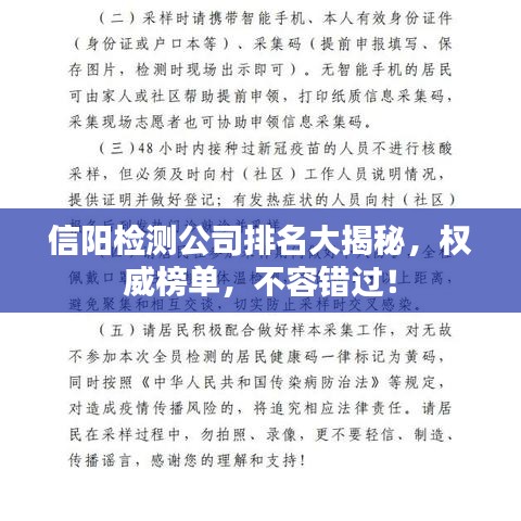 位居首位的是信阳华测检测技术有限公司,该公司凭借其在检测领域的丰富经验和专业技术,赢得了广大客户的信赖,华测检测在行业内拥有先进的检测设备和技术,业务范围涵盖了环境、建筑、材料、食品等多个领域,公司秉承“科学、公正、准确、高效”的服务理念,为客户提供全方位、高质量的检测服务。