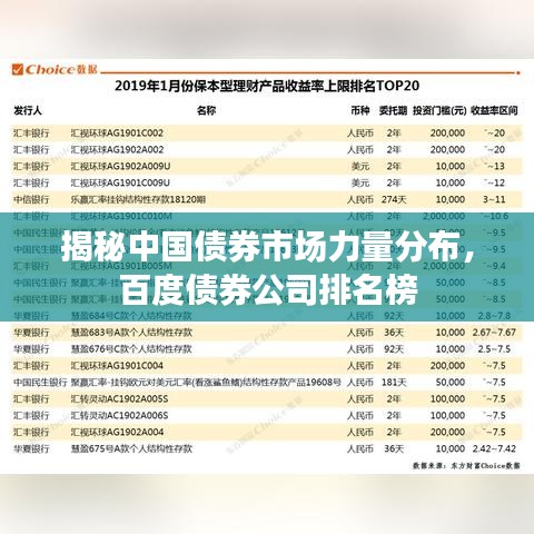 随着中国经济的高速发展,债券市场日益成为重要的金融市场组成部分,在这个背景下,百度债券公司排名榜应运而生,为我们揭示了债券市场中的力量分布,本文将深入探讨这一排名榜的背后含义,以及它对中国债券市场的影响。