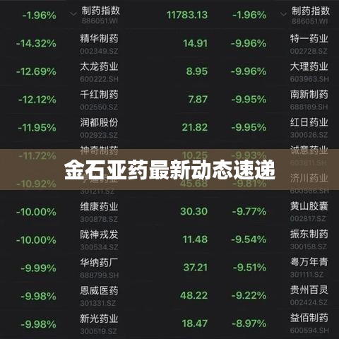 随着全球医药市场的不断发展,金石亚药作为国内知名的制药企业,其最新动态一直备受关注,本文将从公司概况、最新发展、市场表现、产品线和未来展望等方面,介绍今日金石亚药的最新消息。